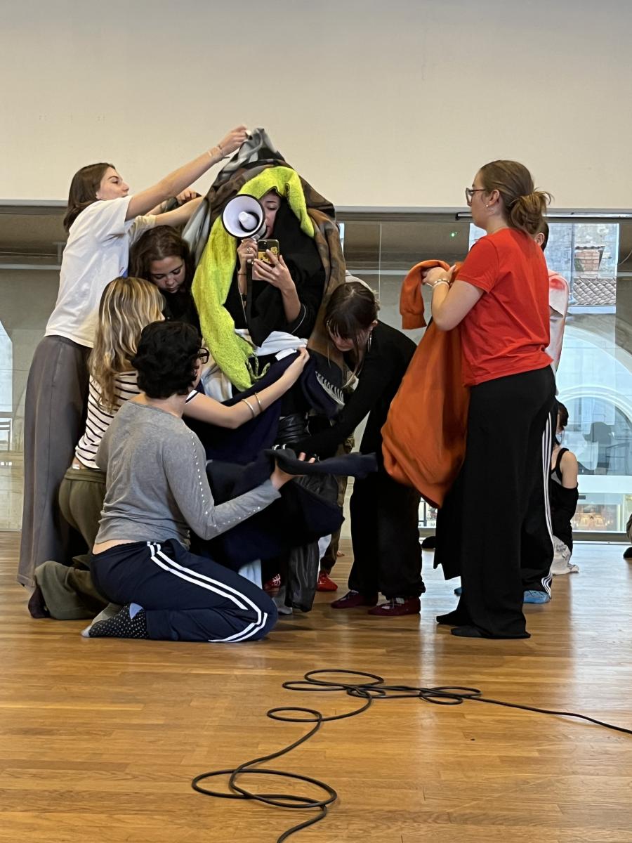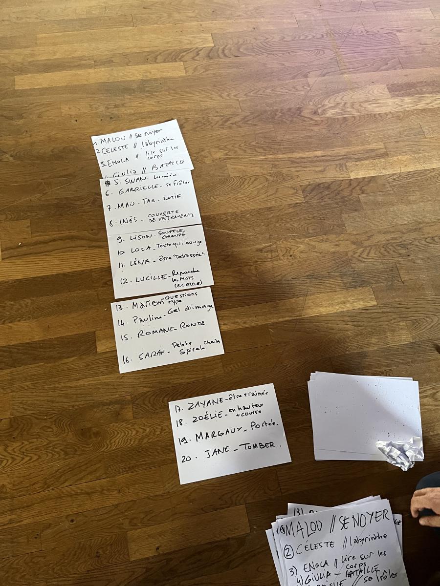 Le groupe s’est rencontré pour la première fois en octobre à la Chapelle Fromentin. À cette occasion, les étudiant·e·s ont découvert l’histoire du lieu, les missions d’un Centre Chorégraphique National et se sont familiarisés avec les thématiques qui seront traversées dans le workshop. Jocelyn Cottencin leur a présenté son travail, son parcours, posant ainsi le cadre de son intervention. Retrouver le sol – textes remués fait écho à une série de projets qu’il a réalisés ces dernières années, dont Lands mené entre 2014 et 2023 à Houston, avec Emmanuelle Hunh, où la question de la modernité a guidé ce cycle de travail.